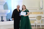 Для церемонии награждения победителей номинации «Отличник года» была приглашена заместитель управляющего Омского отделения Сбербанка Ирина Амелина. Она поздравила всех присутствующих с Днём студента и вручила памятные подарки главным отличникам университета.