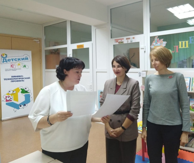 8 октября в Центре развития ребенка – детском саду № 341 состоялась встреча участников инновационного проекта «PROфиль ХимТехДО». Вместе с сотрудниками профильных детских садов в ней приняли участие преподаватели Омского педагогического Елена Анатольевна Алехина и Ирина Владимировна Герасимова, которые являются руководителями проектной группы Технопарка универсальных педагогических компетенций им. В.М. Самосудова «Реализация концепции ТОРИО в детском саду химико-технологического профиля».