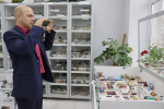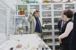 В геологическом кабинете Омского педагогического побывали члены Общественного совета при Главном управлении лесного хозяйства Омской области. Вместе с доцентом кафедры географии и методики обучения географии ОмГПУ Петром Большаником они познакомились с коллекцией минералов и горных пород, узнали о редких палеонтологических находках, а также рассмотрели коллекцию спичек со всего мира.