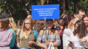 По традиции торжественная линейка, посвященная Дню знаний, открылась знаменным шествием и гимном всех студентов «Гаудеамус», известным также под названием «De brevitate vitae» («О скоротечности жизни»).